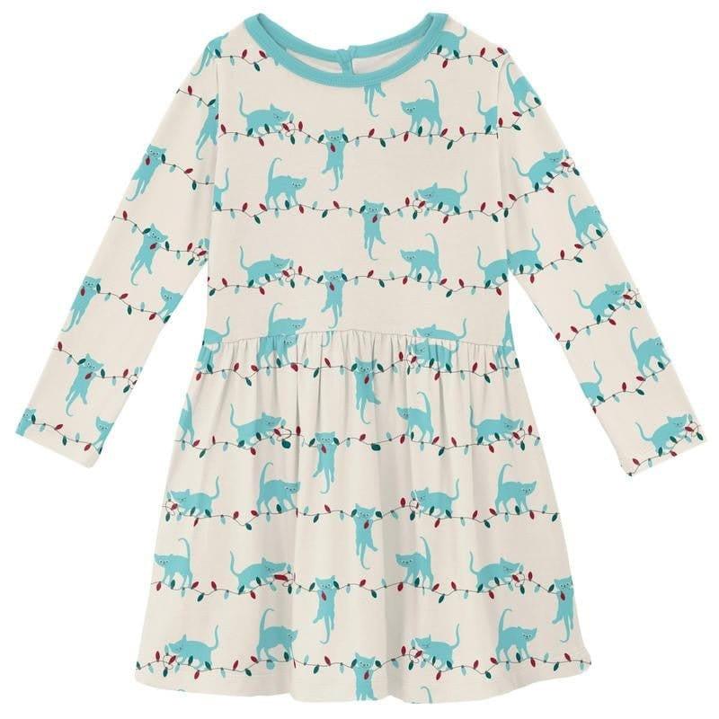 • Product and Style: Kickee Pants Girl's Print Long Sleeve Twirl Dress - Natural Tangled Kittens