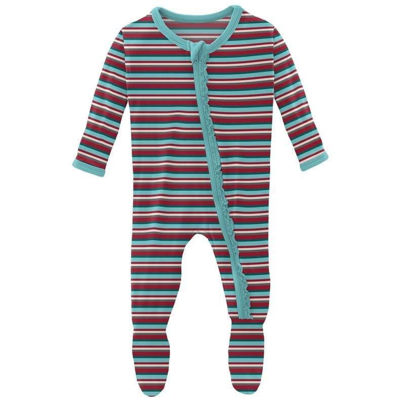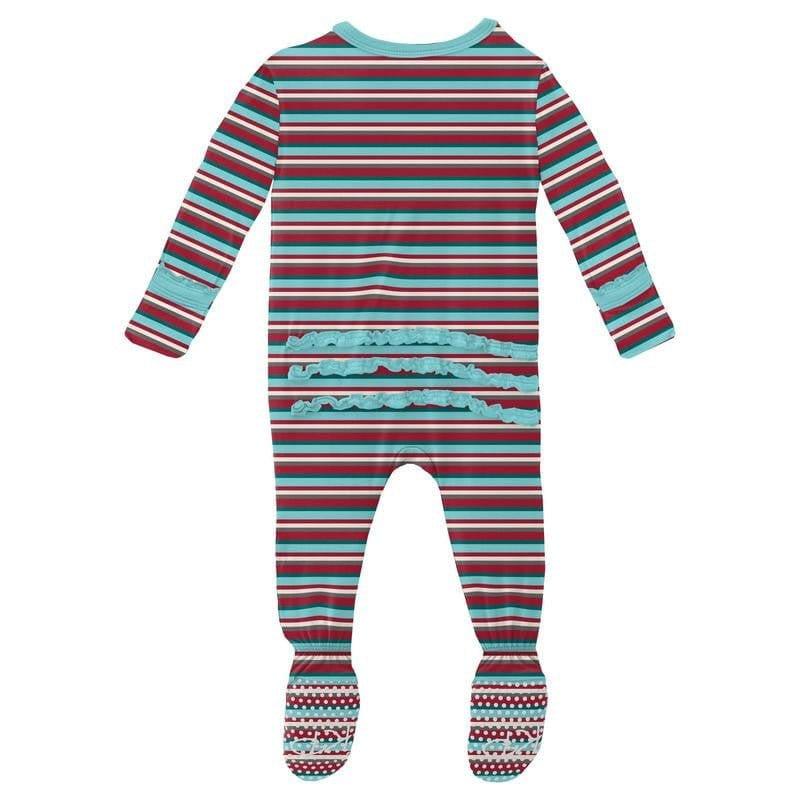 • Product and Style: Kickee Pants Girl's Print Muffin Ruffle Footie with Zipper - Christmas Stripe