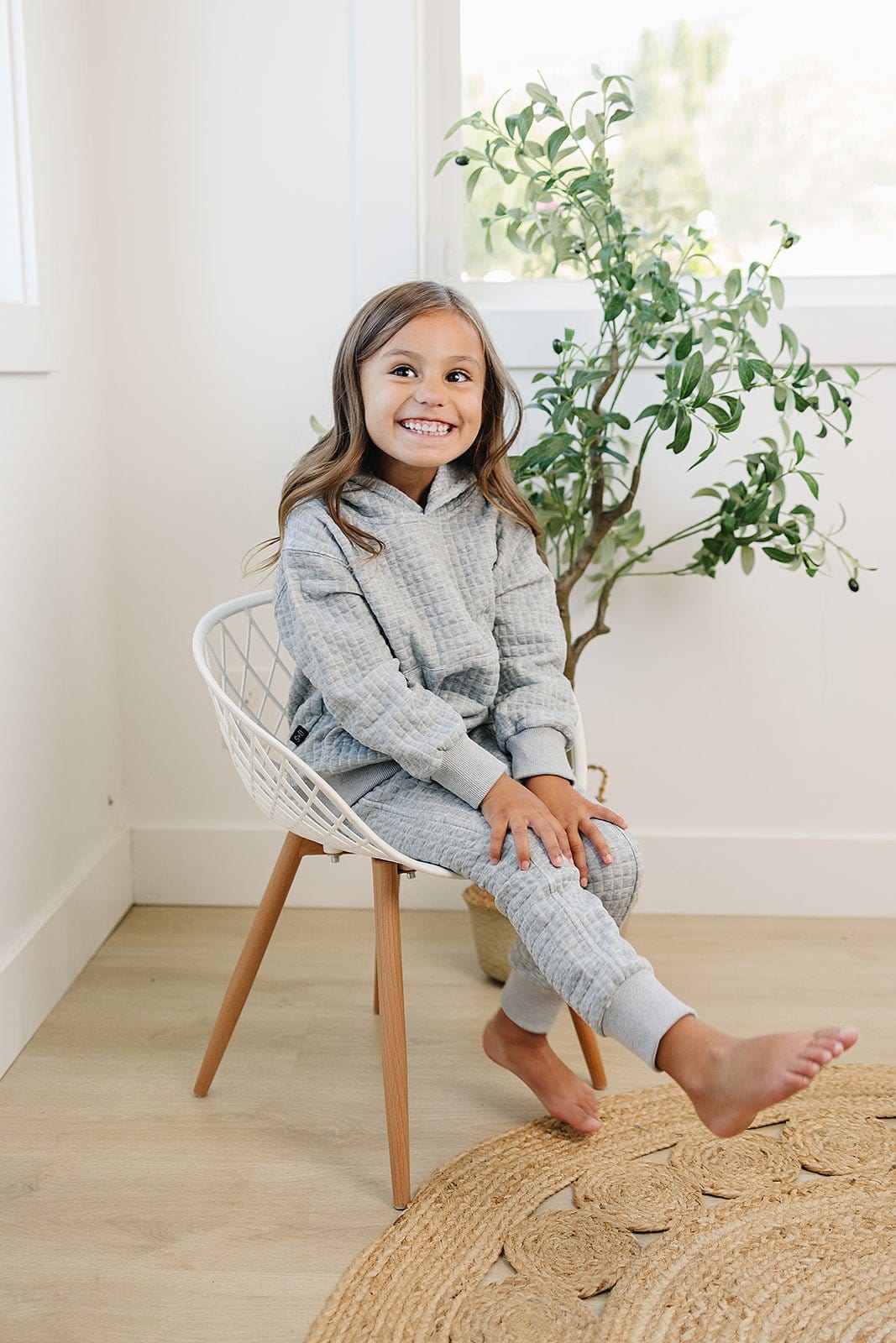 The Archie Jogger Set is a cozy and stylish favorite your little one will adore. Featuring quilted fabric for a distinct look, this sweat suit combines softness with durability. The elastic waistband and functional drawstring ensure a comfy, adjustable fit for all-day play and relaxation. Perfect for everyday adventures!