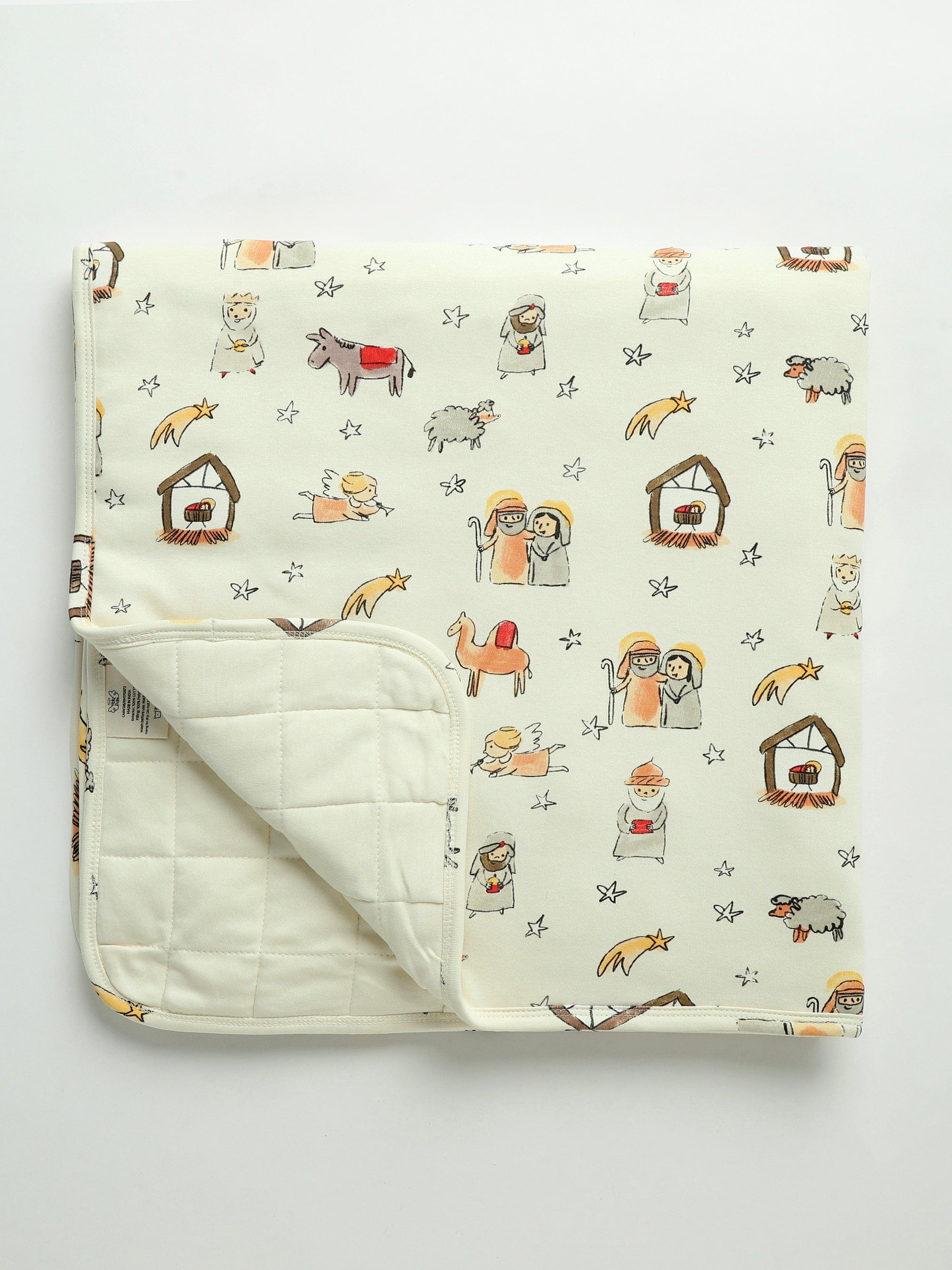 Crafted with a 100% premium cotton for softness and breathability it’s the perfect balance of comfort and durability. Whether you’re rocking baby to sleep, tucking in your toddler, or gifting a family treasure, this blanket is a meaningful way to celebrate the true reason for the season.