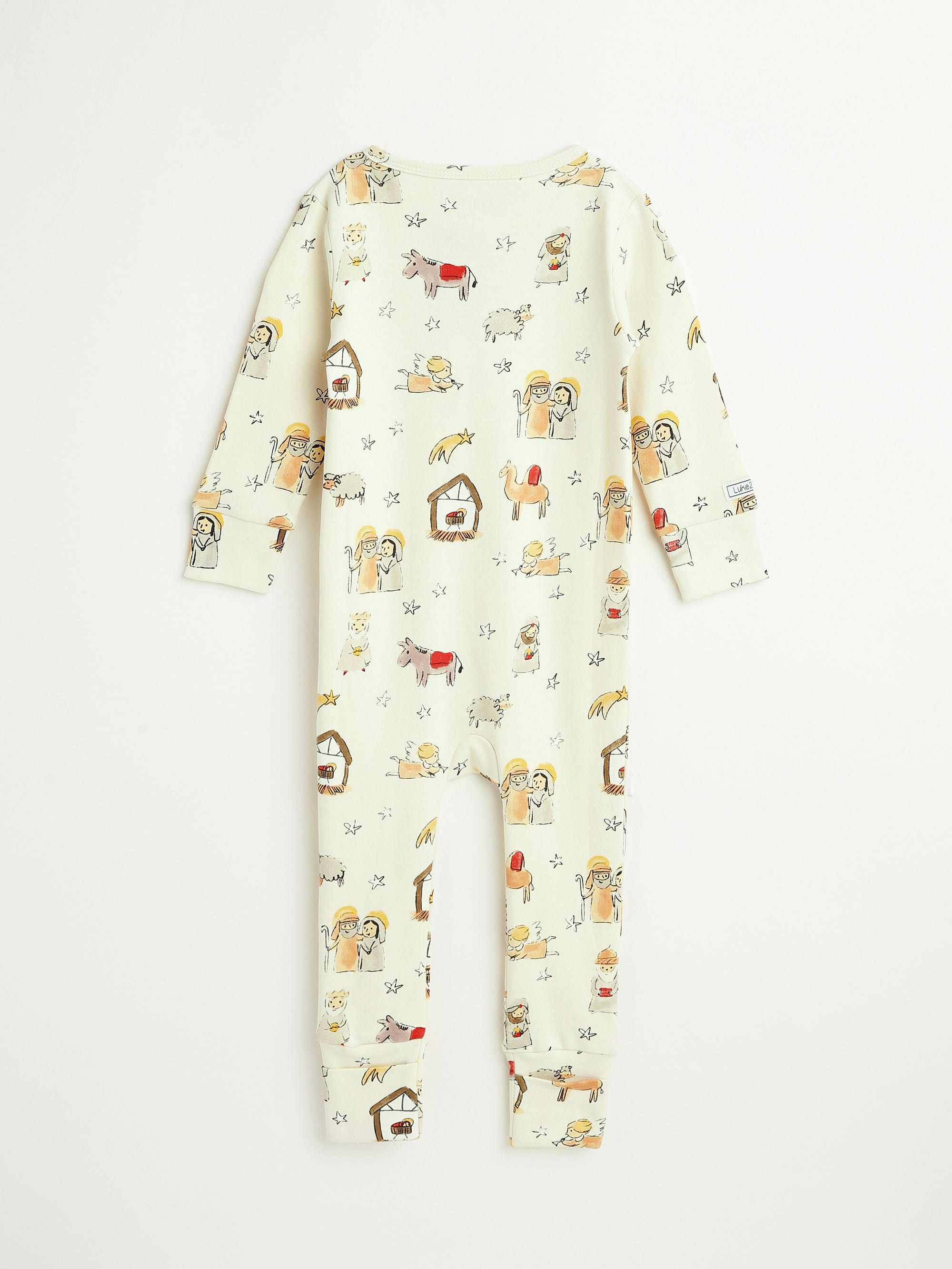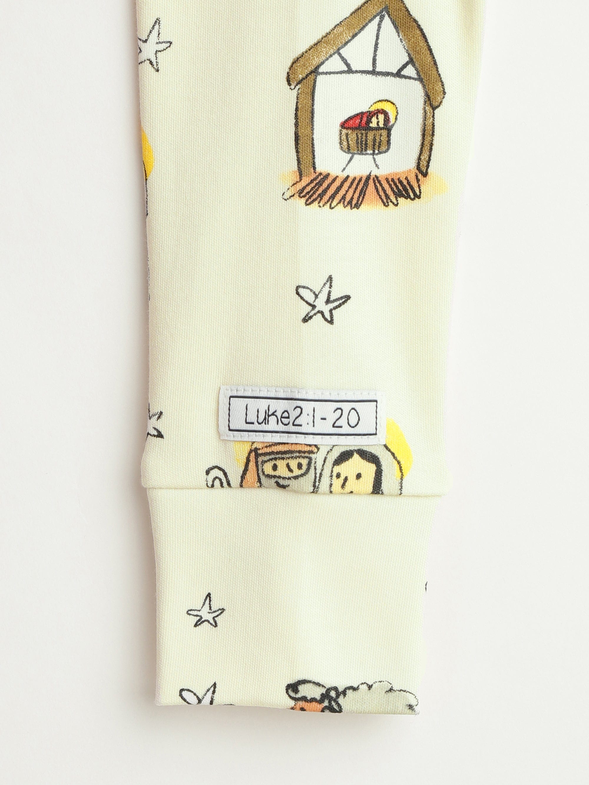 From story time to bedtime snuggles, this Away in a Manger Footed Onesie is designed to keep your child cozy while surrounding them with the true story of Christmas. The Nativity artwork brings Luke 2 to life—Baby Jesus in the manger, Mary and Joseph watching over Him, shepherds and wise men nearby, and the shining star overhead. It’s more than pajamas—it’s a way to keep Christ at the center of your family’s Christmas traditions.