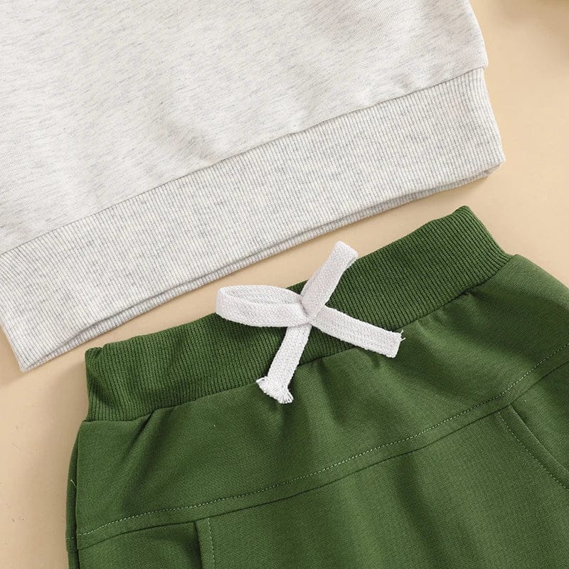 Baby Toddler Girl Boy 2Pcs Lucky St. Patrick's Day Spring Outfit Letter Shamrock Four Leaf Clover Embroidery Long Sleeve Crewneck Top with Elastic Waist Solid Pants Jogger Set