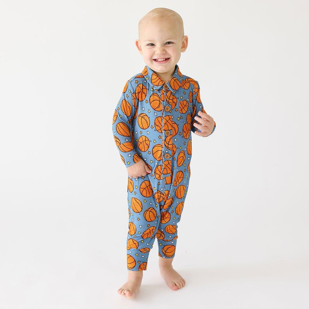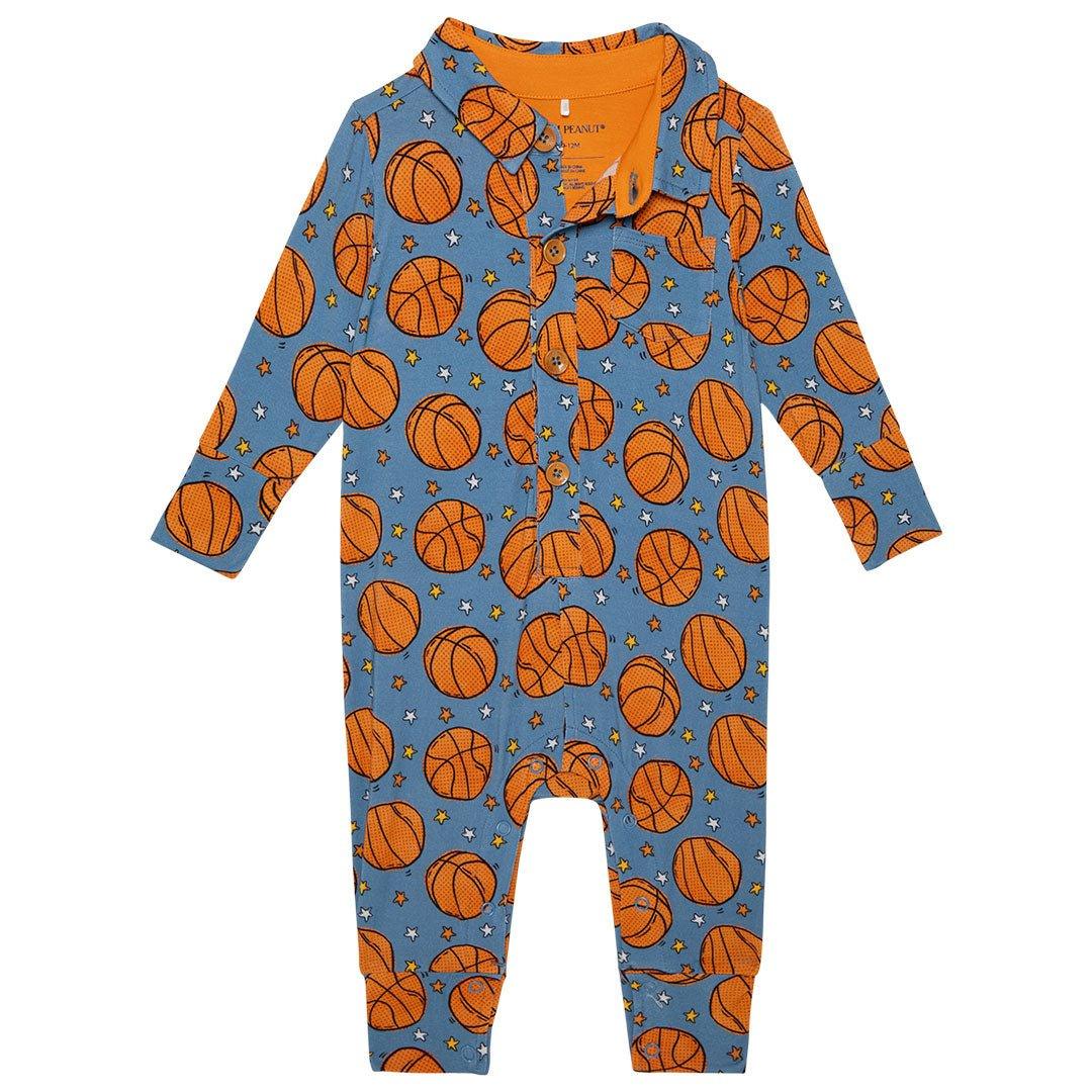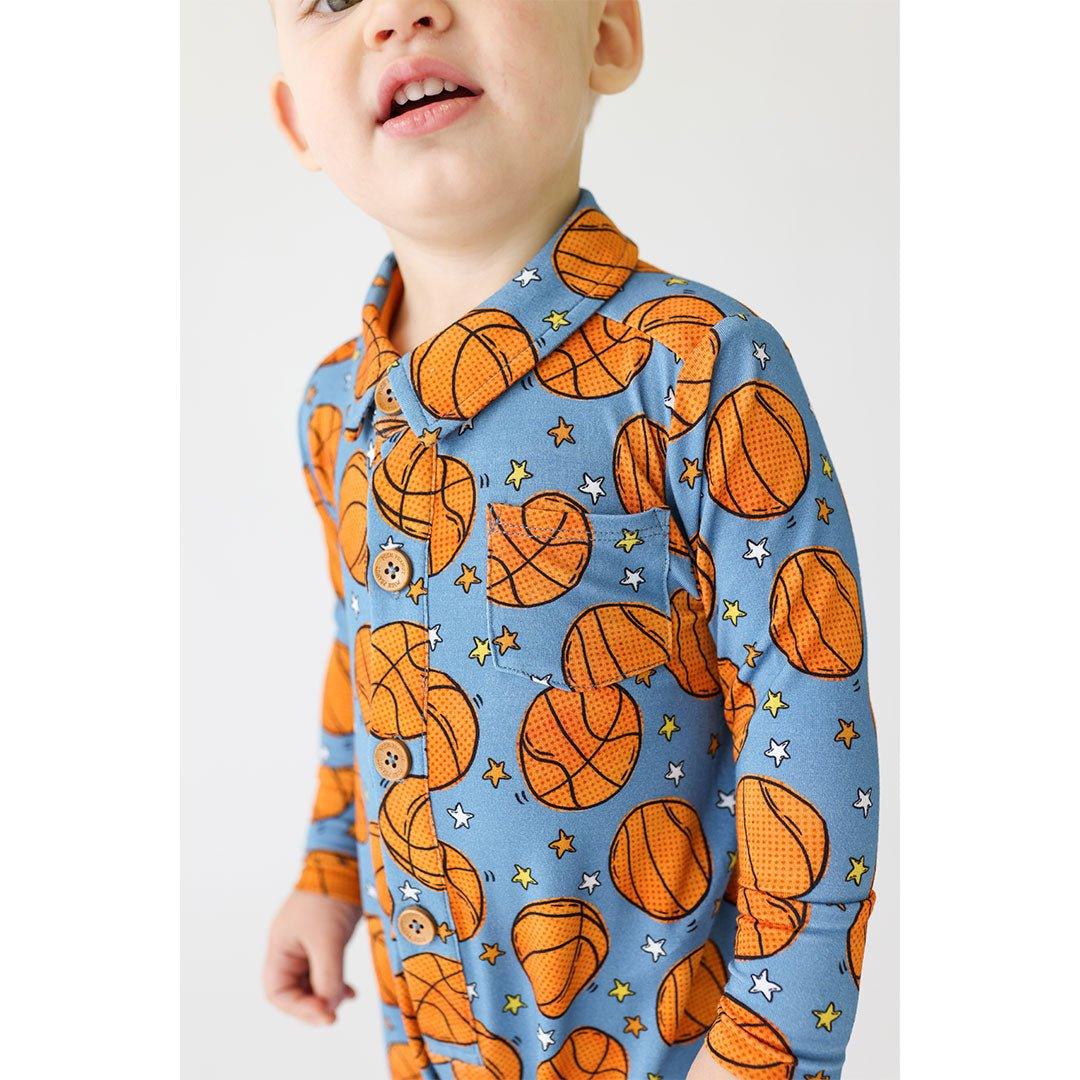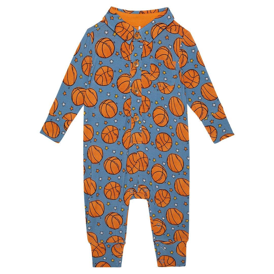Bamboo Long Sleeve Collared Henley Long Romper - Slam Dunk (Basketball)