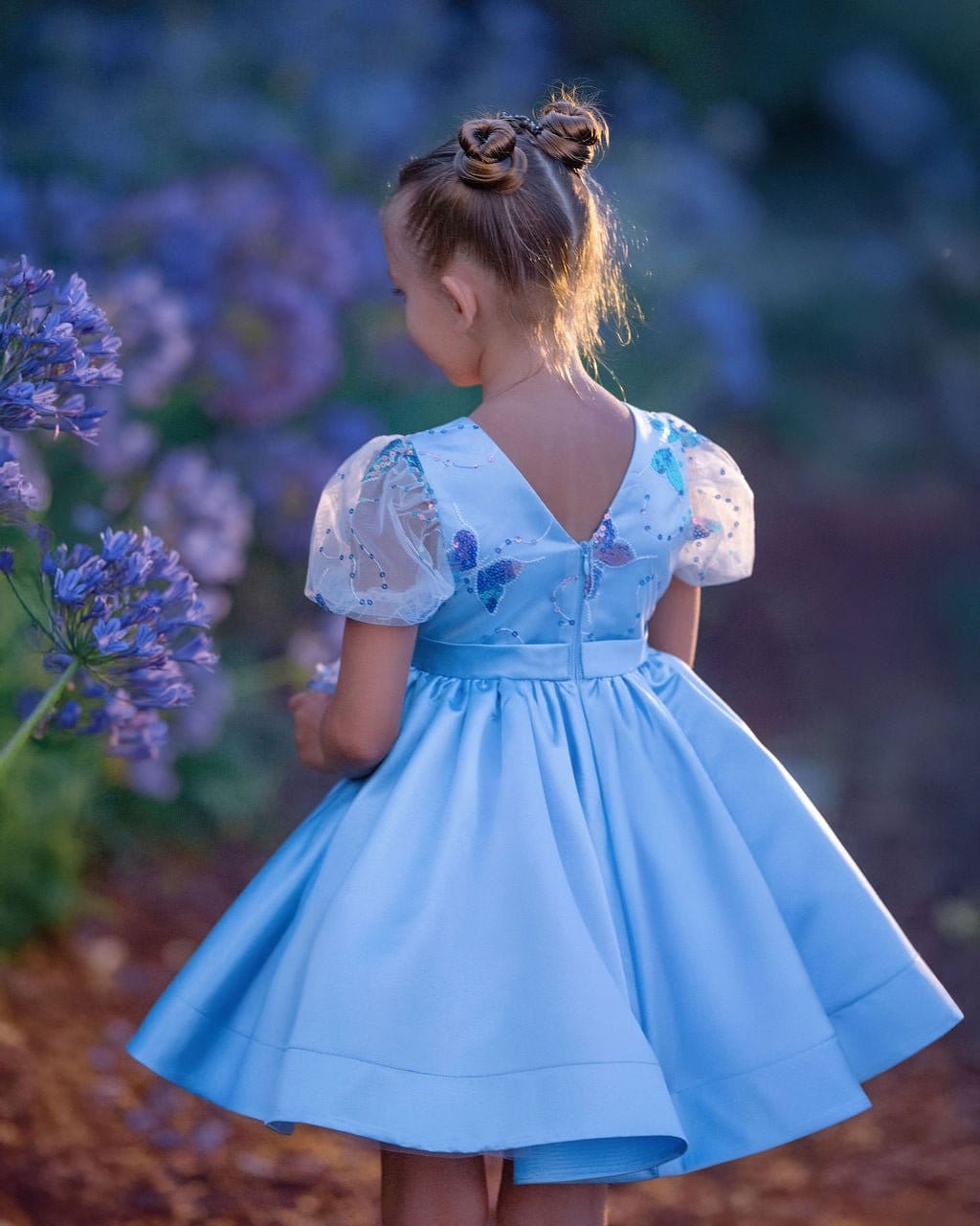 • Elegant blue butterfly dress for girls with iridescent sequin embroidery