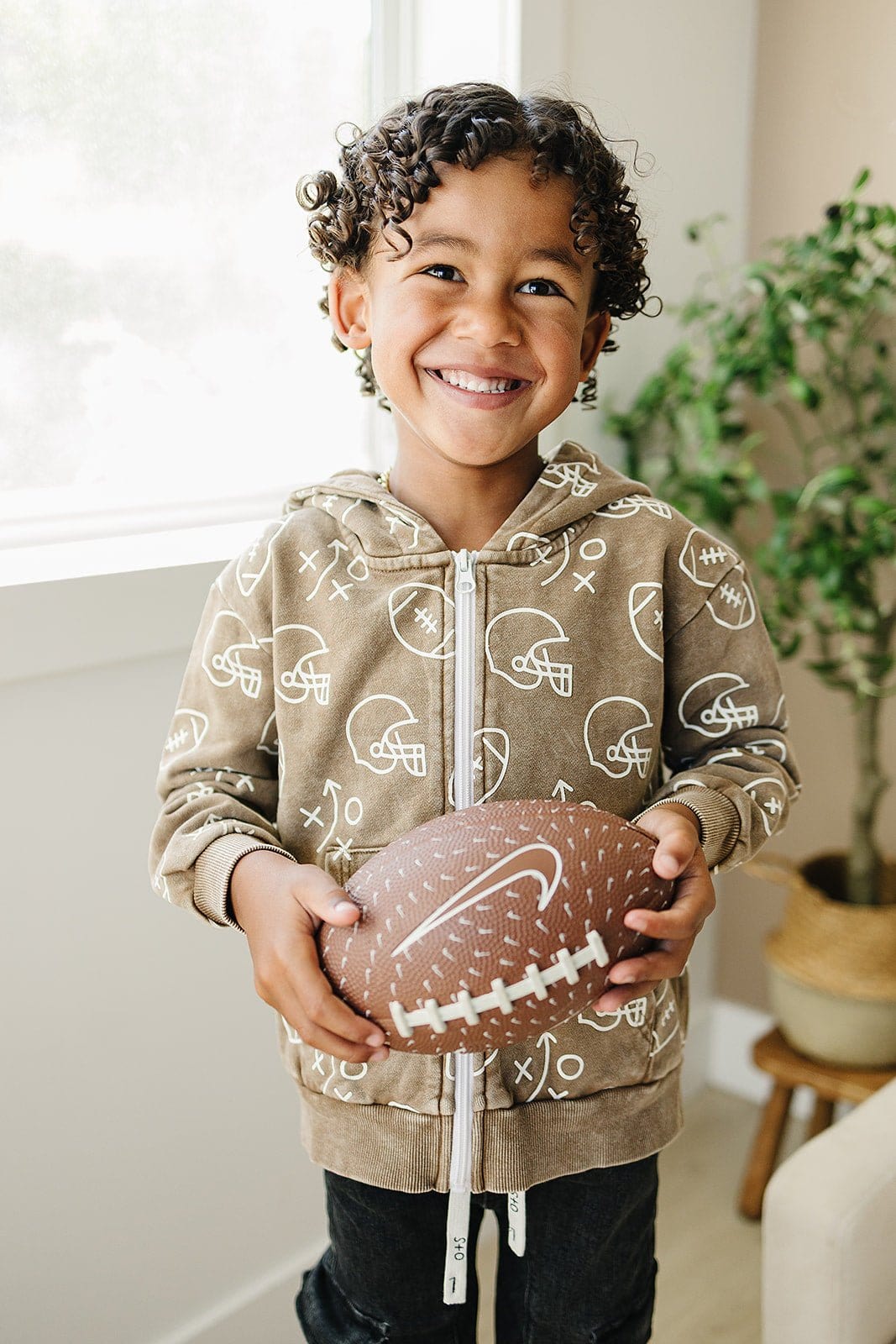 Keep your little one cozy and stylish with the Cohen Zip Up Hoodie, featuring a fun all-over football or basketball print. This playful hoodie is perfect for layering on chilly days, making it a go-to favorite for active kids who love sports and staying comfy.