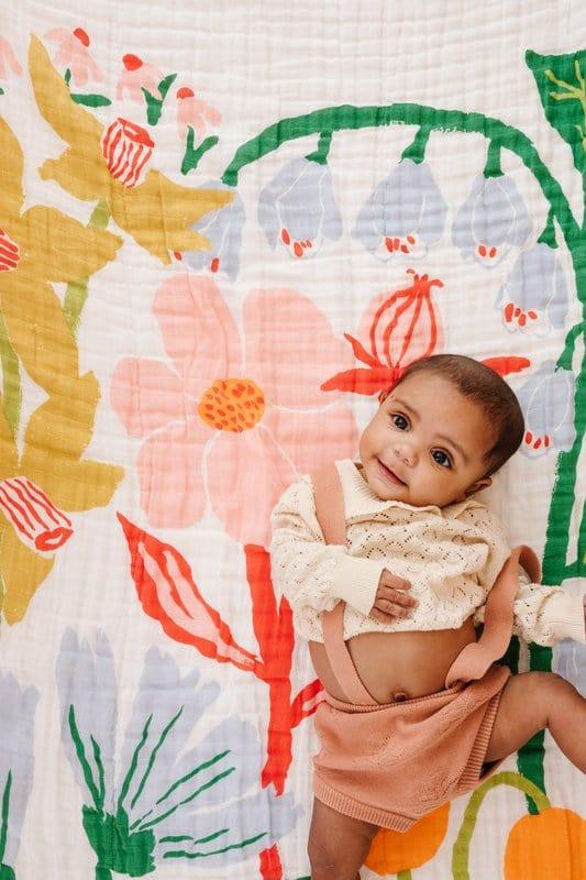 We love muslin for its breathability and versatility. The loose weave of the fabric keeps your little one warm without overheating and the fibers are absorbent and soft. They’re a go to for us at bedtime, playtime, meal time, any time.