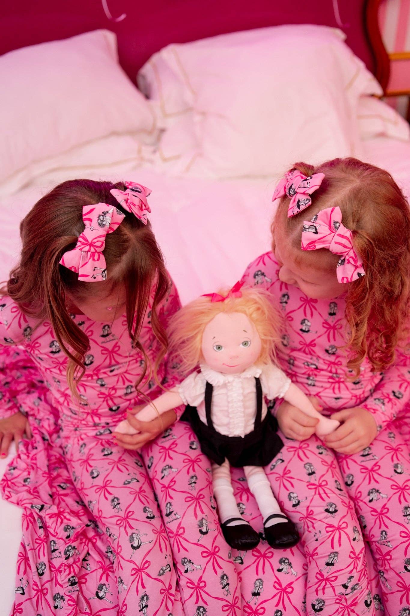 👑 Set of 2 clips with Eloise on the Plaza print + royal pink bow details