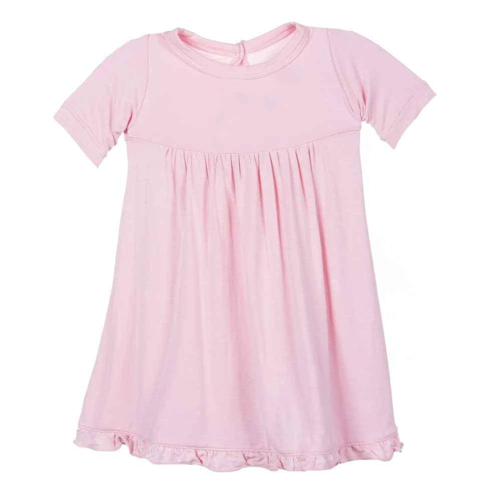 Girl's Basic Solid Bamboo Short Sleeve Swing Dress, Lotus