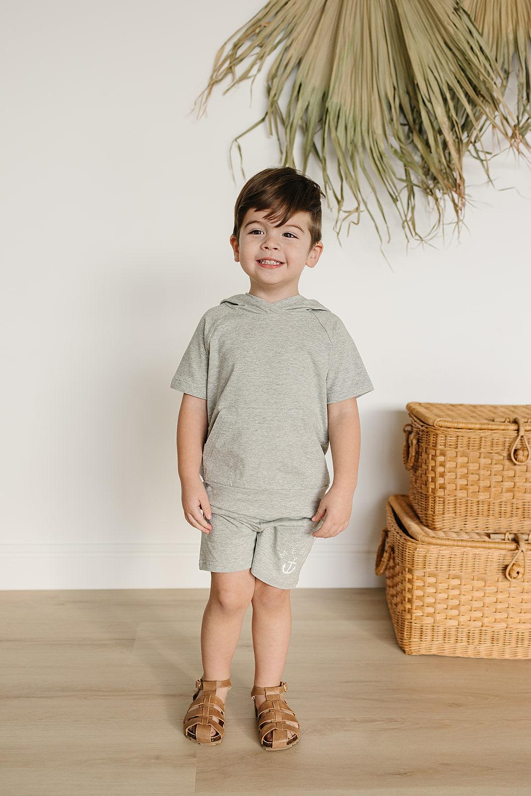 These heather grey cotton pocket shorts are the perfect addition to your little one's wardrobe. Made from soft, breathable cotton, they offer all-day comfort for playdates, weekend outings, or just lounging around. The classic heather grey color pairs easily with any top, while the handy side pockets give them a practical touch. A must-have for active kids!