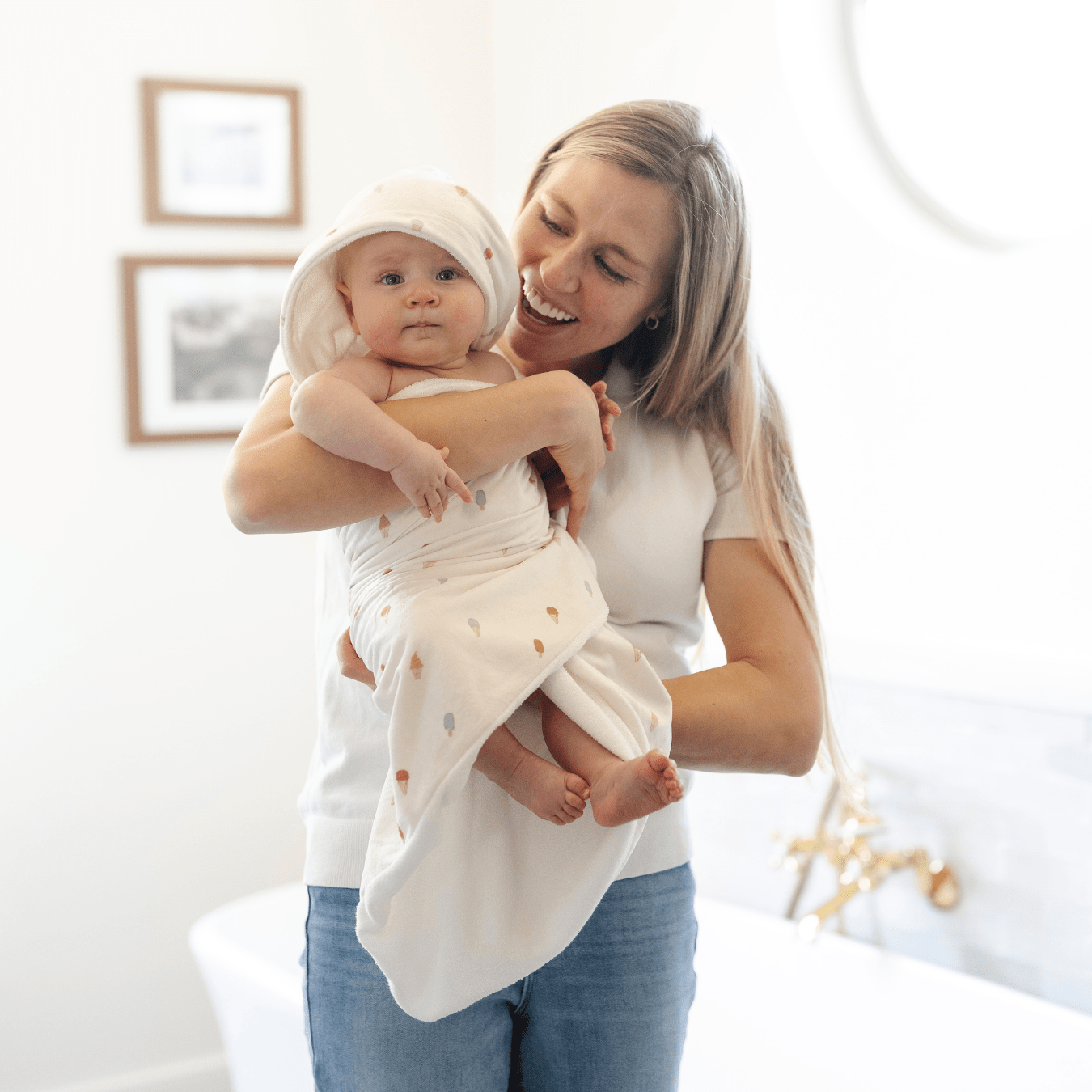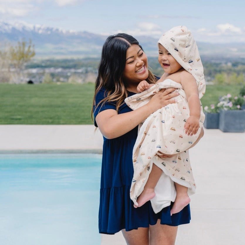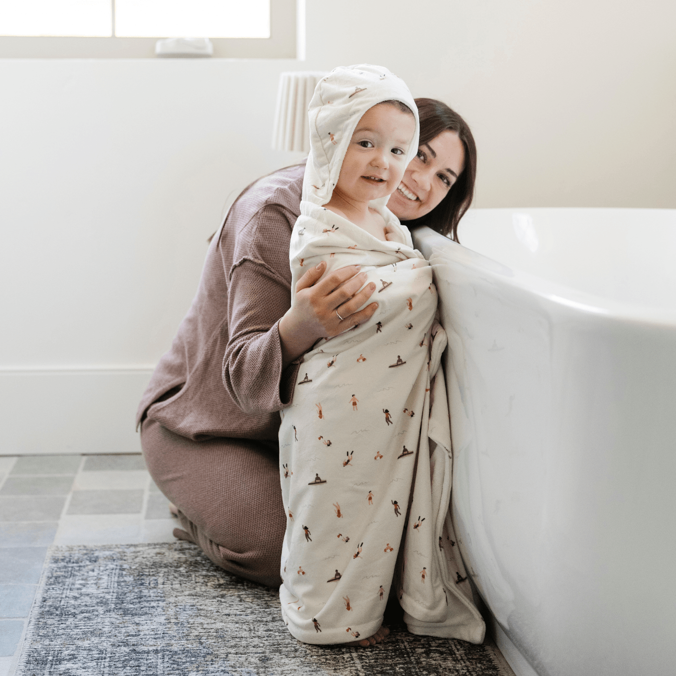 Saranoni’s hooded towels make the end of bath time, pool time or water play  softer than ever before! Made with ultra absorbent luxury minky and terrycloth to provide quick-drying comfort and the softest touch for sensitive skin. To wash, simply wash on cold without softeners or pods and hang to dry!