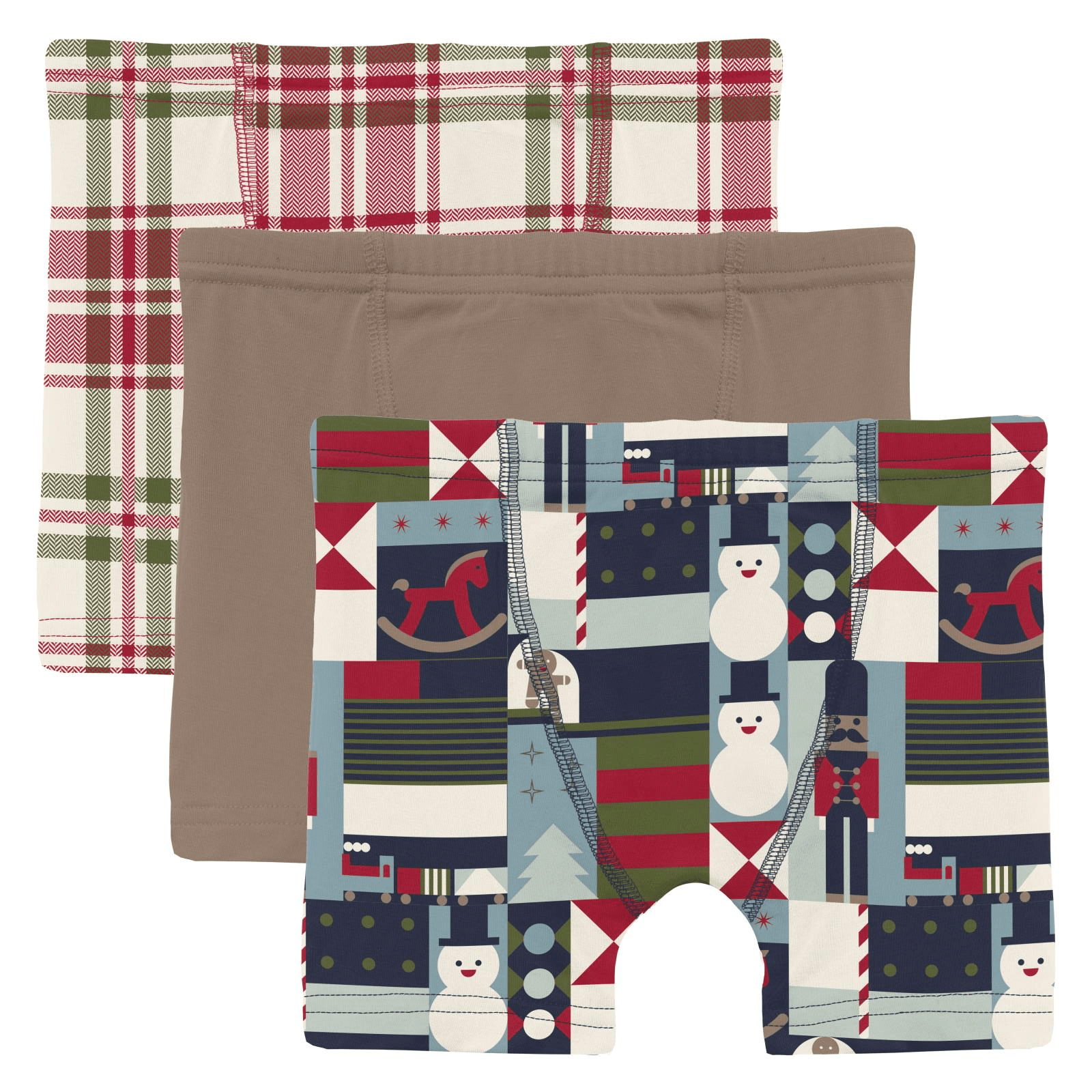 • Product and Style: Kickee Pants Bamboo Boxer Briefs (Set of 3) - Fireside Plaid, Portabella & Peacoat Mod Christmas