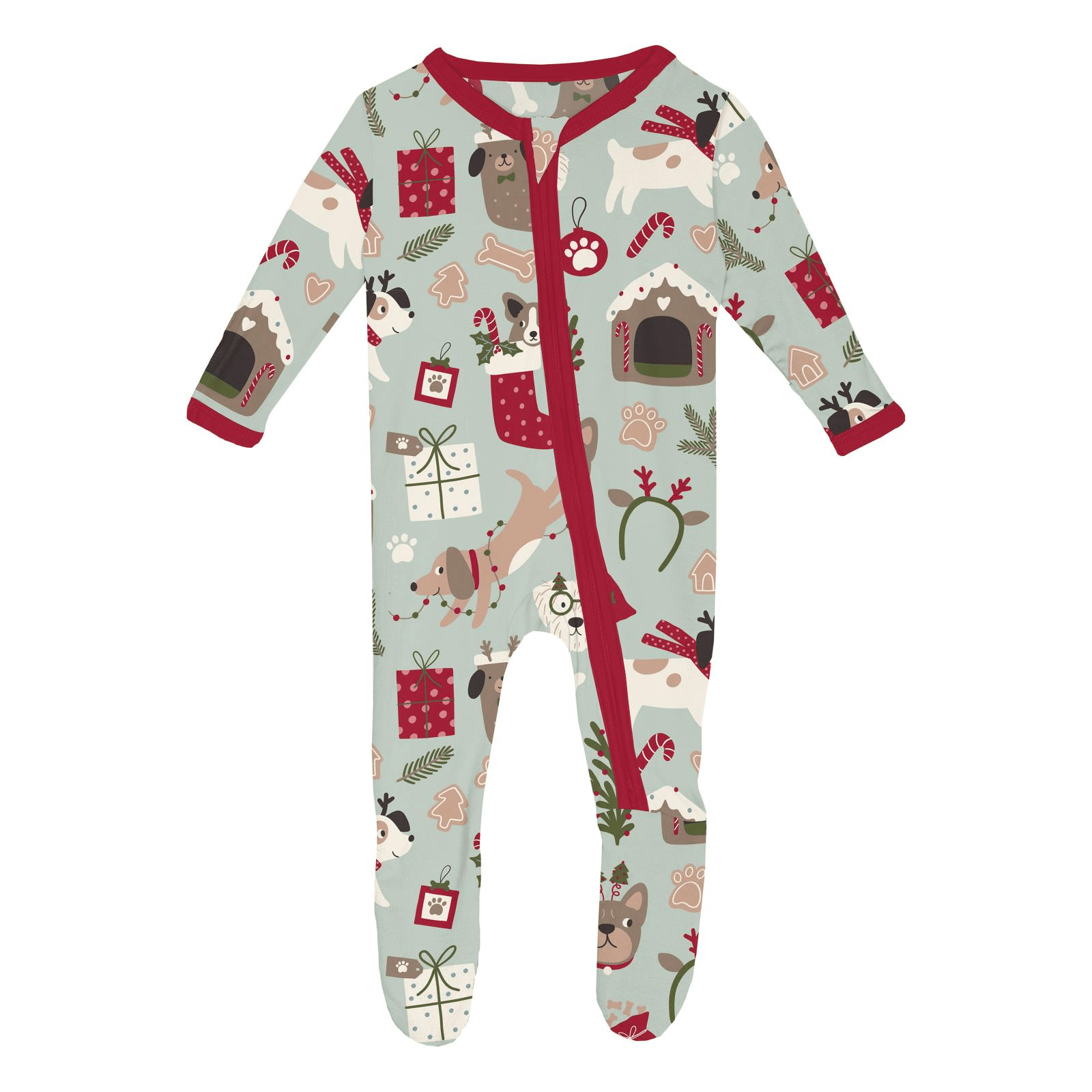 • Product and Style: Kickee Pants Bamboo Footie with 2-Way Zipper - Aloe Christmas Dogs