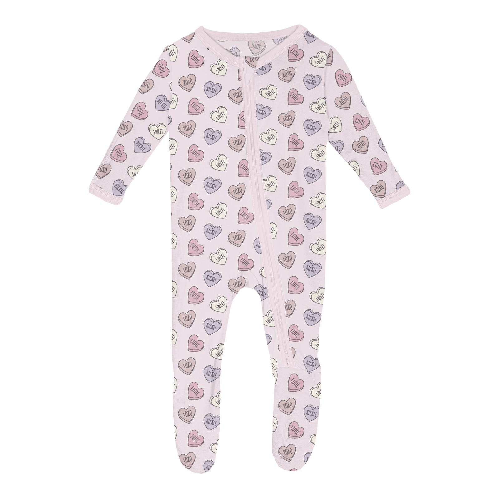 • Product and Style: Kickee Pants Bamboo Footie with 2-Way Zipper - Candy Hearts