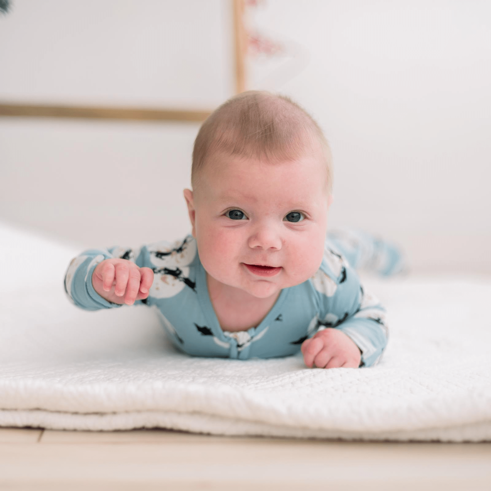 Meet the all-in-one Footie! This Footie features a 2-way zipper for effortless day or night changes. The snug, cozy fit keeps little ones comfortable, while flip-over “paws” protect tiny hands from chills and scratches. Soft fleece lining in the feet adds extra warmth, and non-slip soles help little movers stay steady. Made from buttery-soft fabric, this Footie is a cuddle-ready essential you’ll reach for again and again.