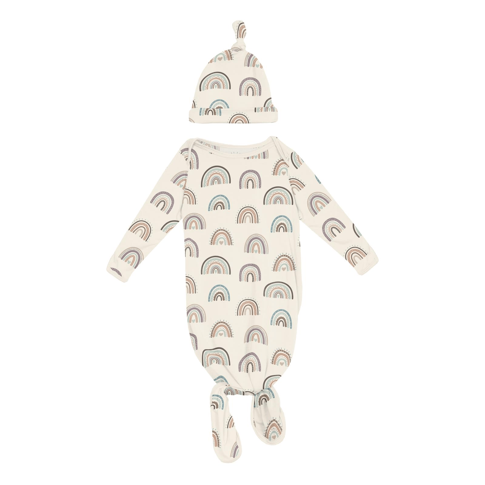 • Product and Style: Kickee Pants Bamboo Knotted Layette Gown & Hat Set - Earthy Rainbows