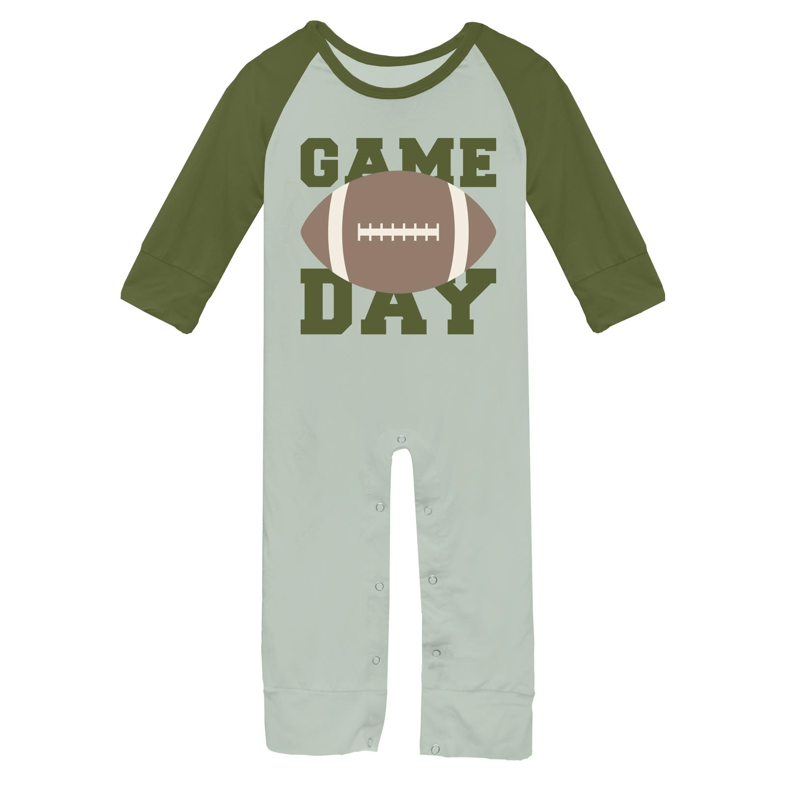 • Product and Style: Kickee Pants Bamboo Long Sleeve Graphic Raglan Romper - Aloe Game Day