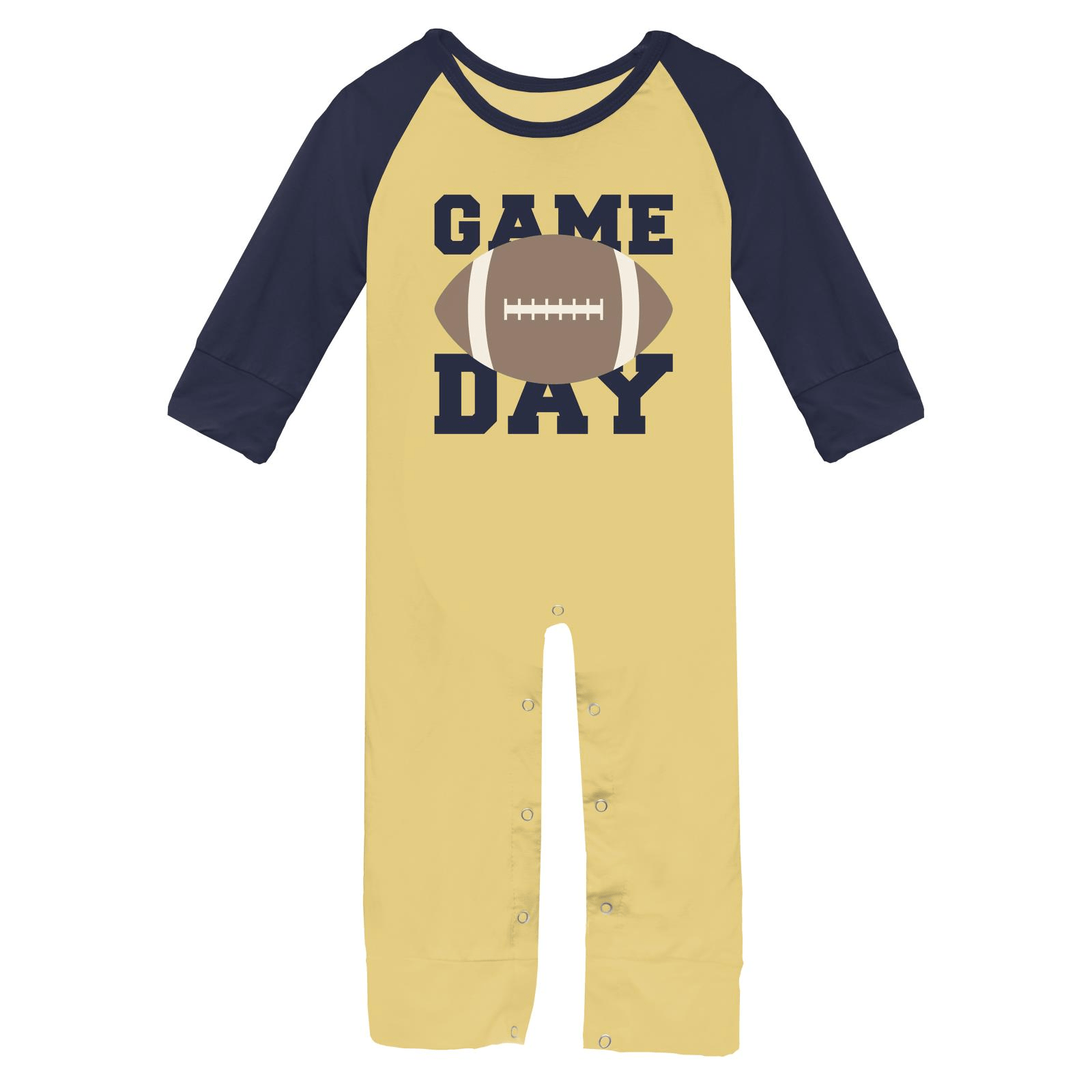 • Product and Style: Kickee Pants Bamboo Long Sleeve Graphic Raglan Romper - Flax Game Day
