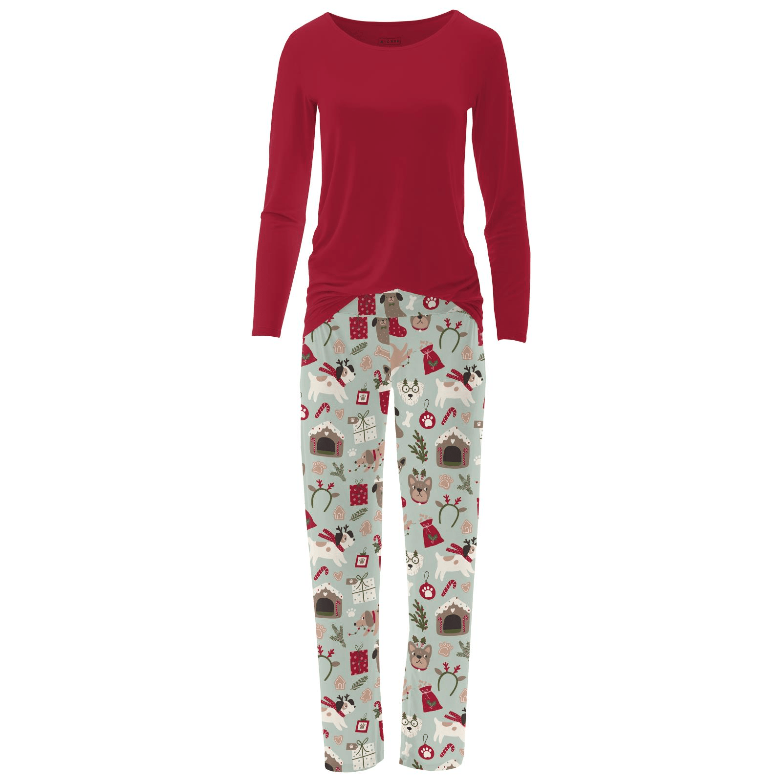• Product and Style: Kickee Pants Bamboo Long Sleeve Relaxed Tee & Pajama Pants Set - Aloe Christmas Dogs