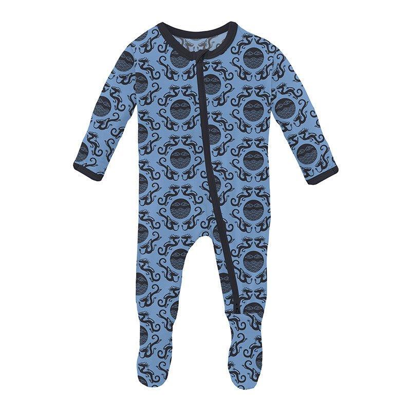 • Product and Style: Kickee Pants Boy's Print Footie with 2-Way Zipper - Dream Blue Four Dragons