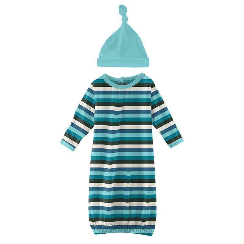 • Product and Style: Kickee Pants Boy's Print Layette Gown & Single Knot Hat Set - Ice Multi Stripe