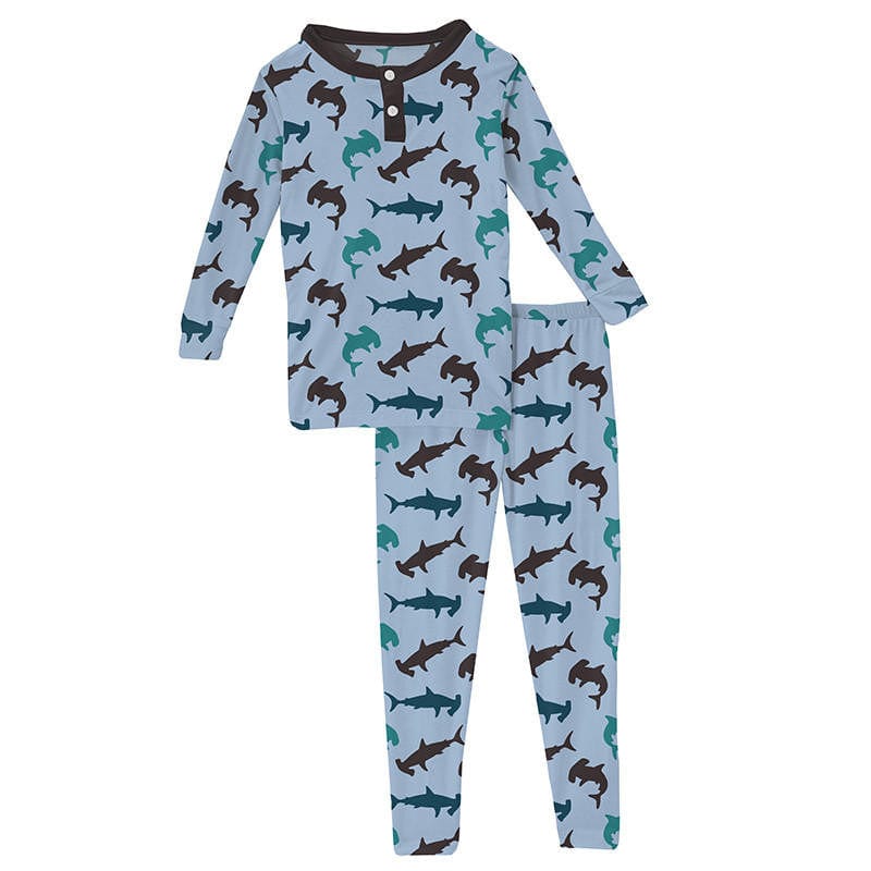 • Product and Style: Kickee Pants Boy's Print Long Sleeve Henley Pajama Set - Pond Hammerhead