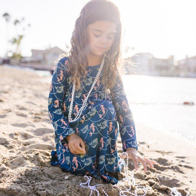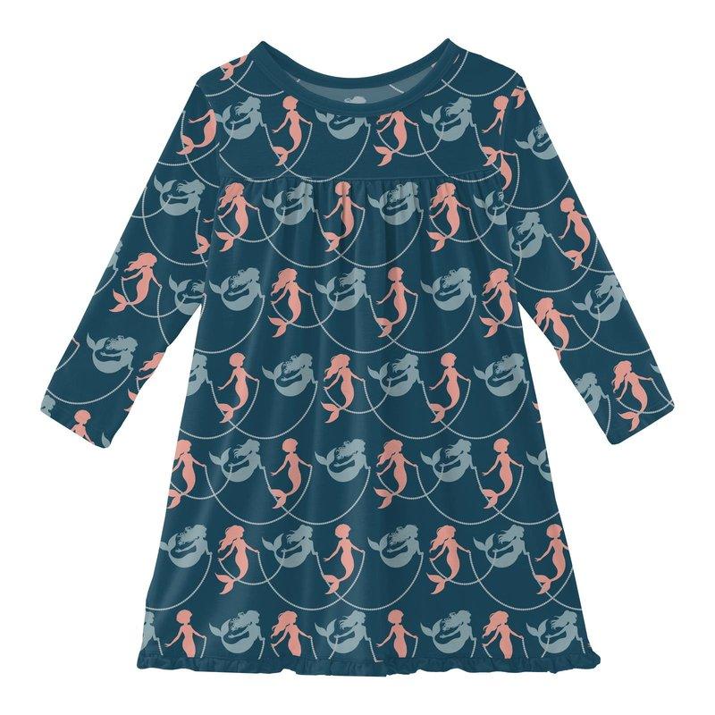 • Product and Style: Kickee Pants Girl's Classic Long Sleeve Swing Dress - Peacock Mermaids & Pearls