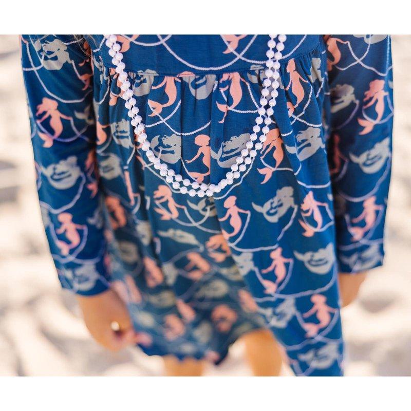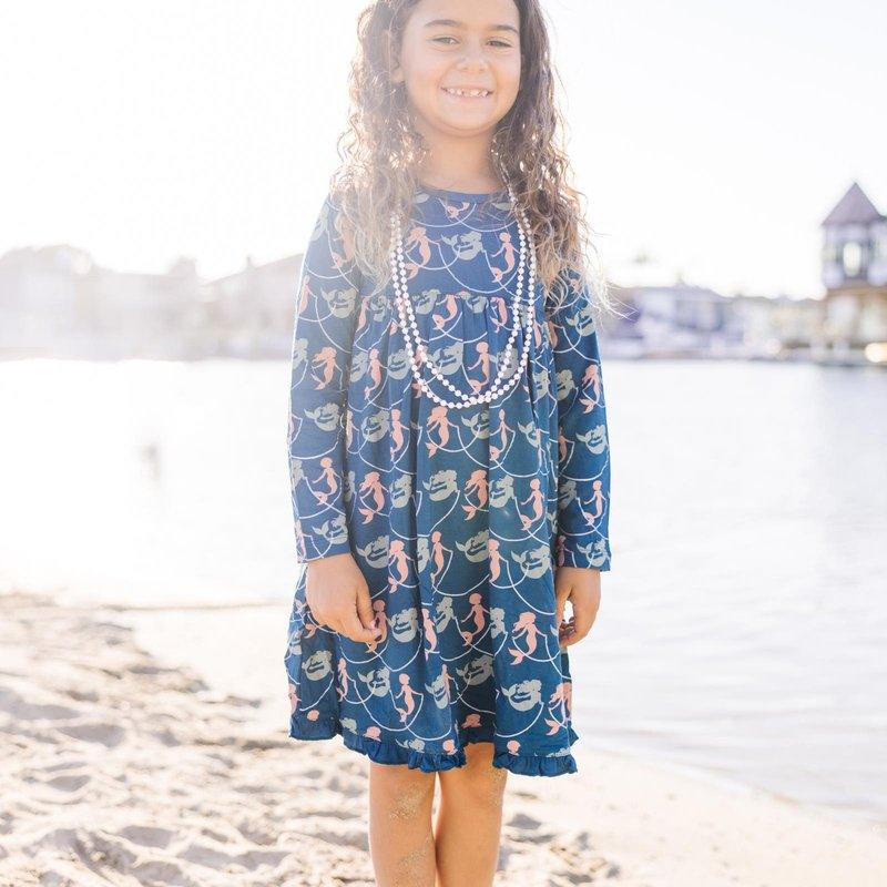 Bamboo Classic Long Sleeve Swing Dress - Peacock Mermaids & Pearls