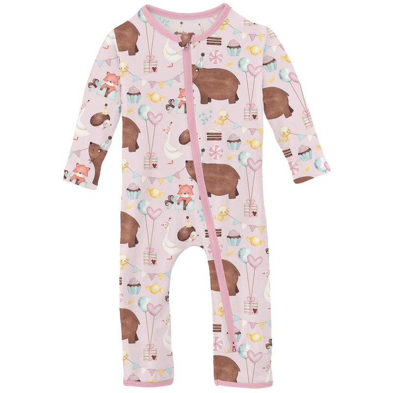 Bamboo Coverall with 2-Way Zipper - Shrinking Violet Forest Party