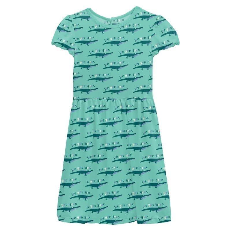 • Product and Style: Kickee Pants Girl's Print Flutter Sleeve Twirl Dress with Pockets - Glass Later Alligator