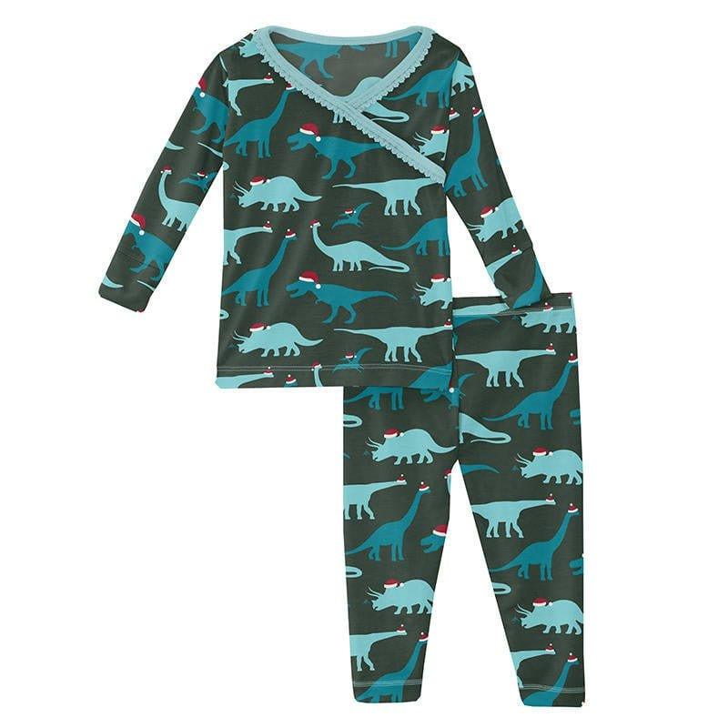 • Product and Style: Kickee Pants Girl's Print Long Sleeve Scallop Kimono Pajama Set - Santa Dinos