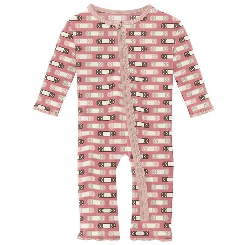 Girl's Print Bamboo Muffin Ruffle Coverall with Zipper - Desert Rose Boo Boos