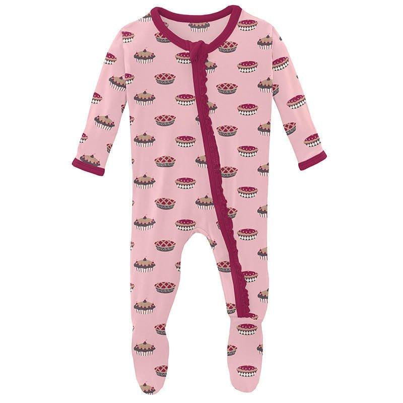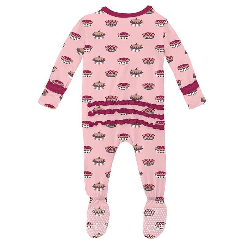 • Product and Style: Kickee Pants Girl's Print Muffin Ruffle Footie with Zipper - Lotus Pies