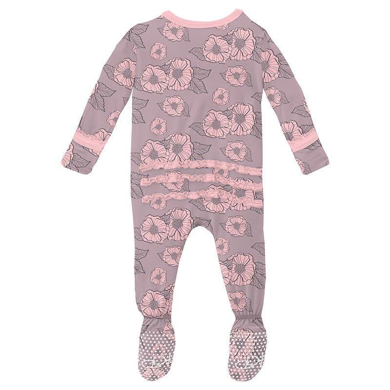 • Product and Style: Kickee Pants Girl's Print Muffin Ruffle Footie with Zipper - Sweet Pea Poppies