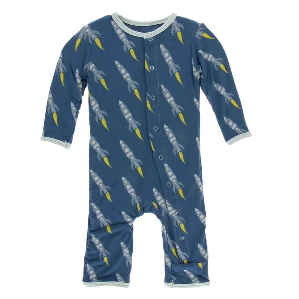 Print Bamboo Coverall with Snaps - Twilight Rockets