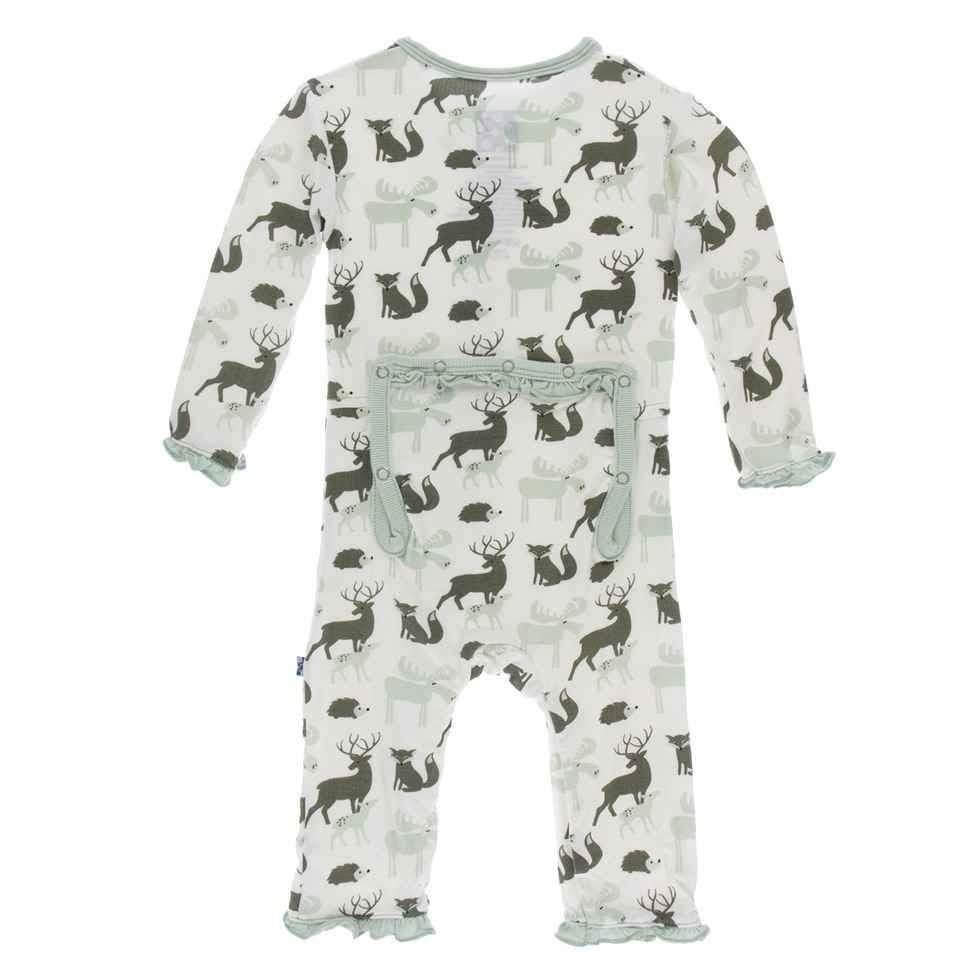 Print Bamboo Classic Ruffle Coverall with Zipper - Natural Forest Animals
