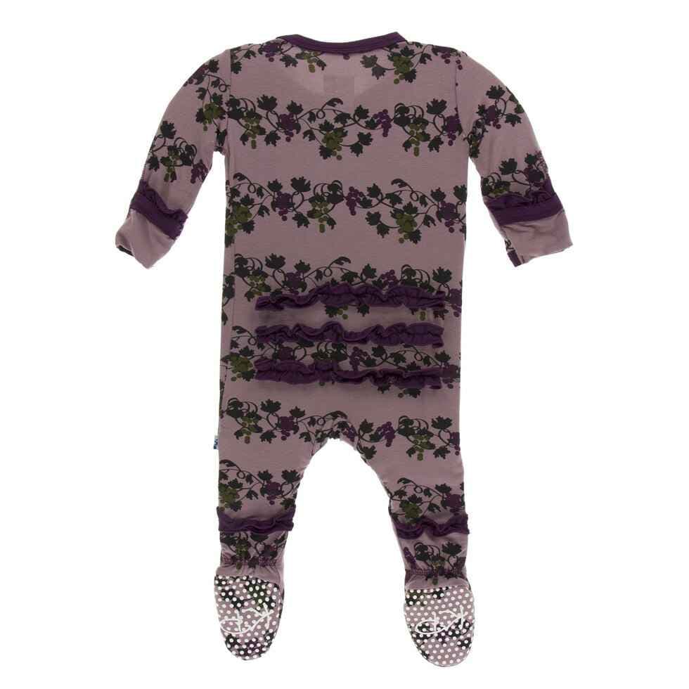 Print Classic Ruffle Footie with Snaps - Raisin Grape Vines