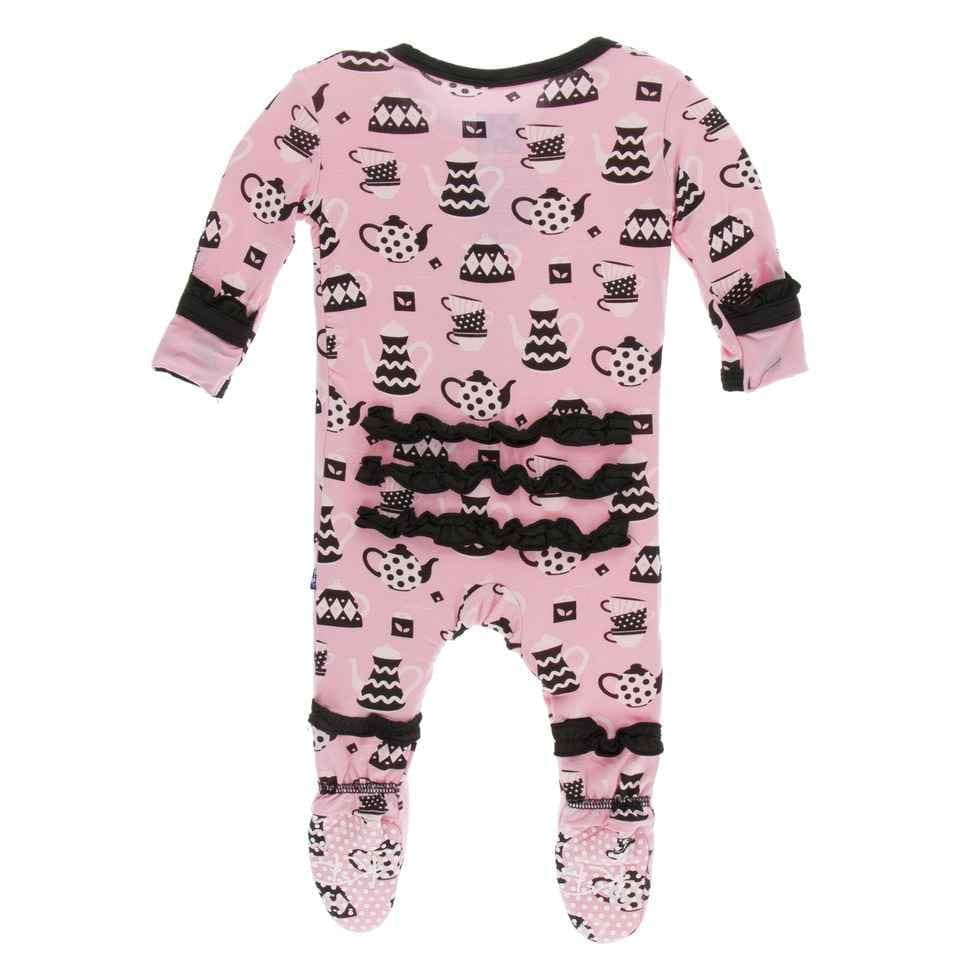 Print Classic Ruffle Footie with Snaps - Teatime