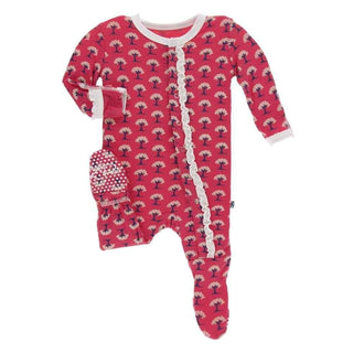 Print Bamboo Muffin Ruffle Footie with Snaps - Red Ginger Mini Trees