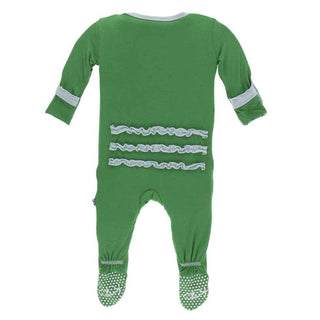 Solid Bamboo Muffin Ruffle Footie with Snaps - Fern with Spring Sky