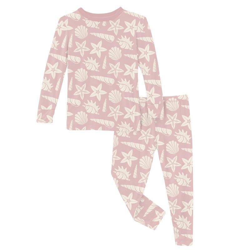 • Product and Style: Kickee Pants Girl's Long Sleeve Pajama Set - Baby Rose Shells & Starfish