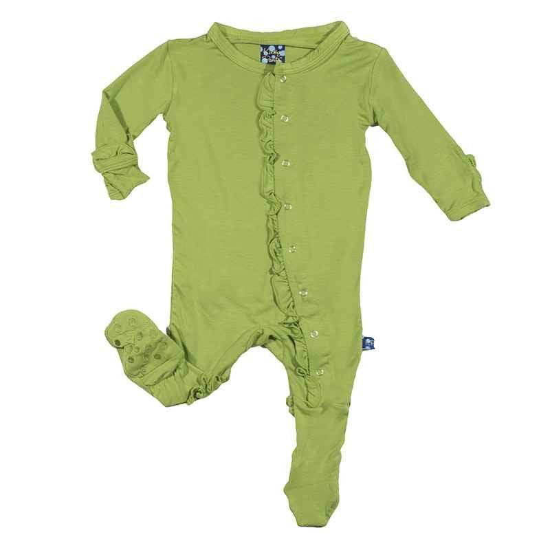 Bamboo Ruffle Footie with Snaps, Meadow Green