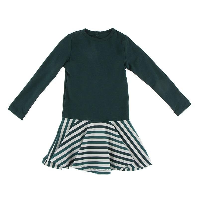 Bamboo Long Sleeve Luxe Keyhole Dress for Girls - Wildlife Stripe