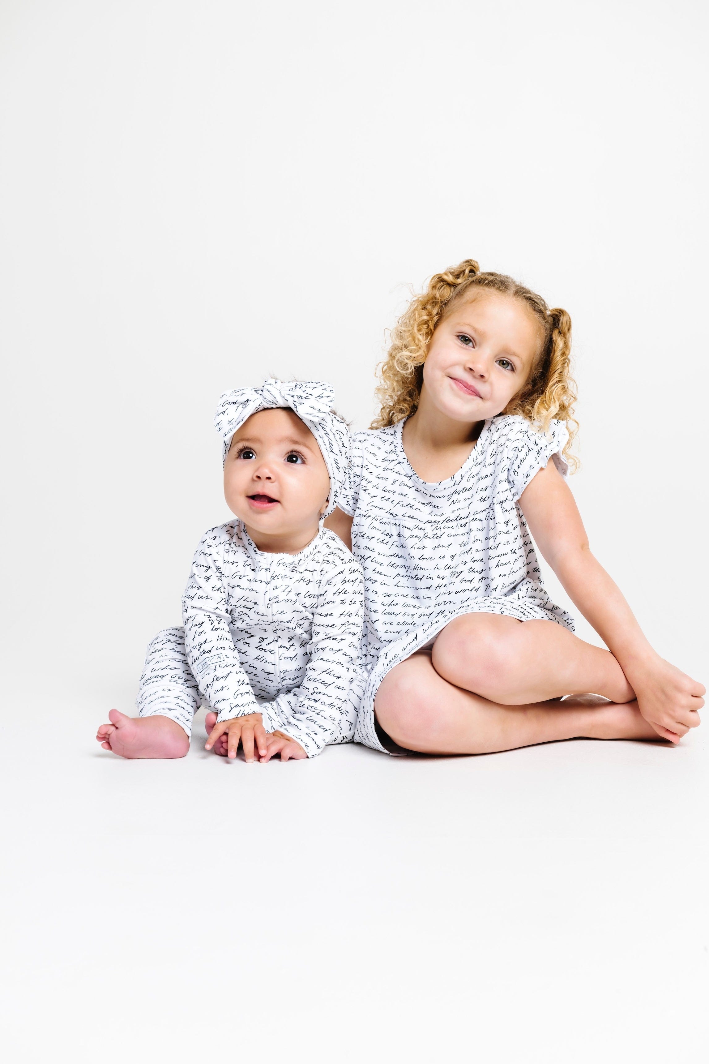 This Girls Nightgown features our exclusive "Love One Another" print, with the full text of 1 John 4:7–19 written in elegant script. The design features short sleeves, a comfortable crew neck, and a flowing skirt for ease of movement. The gown includes the unique Scripture label detail on the cuff and is available in children's sizes 2–10.