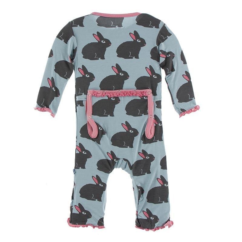 • Style and Print: Kickee Pants Muffin Ruffle Coverall with Zipper, Jade Forest Rabbit
