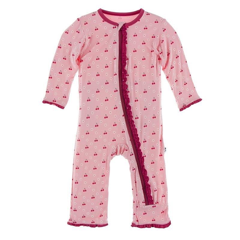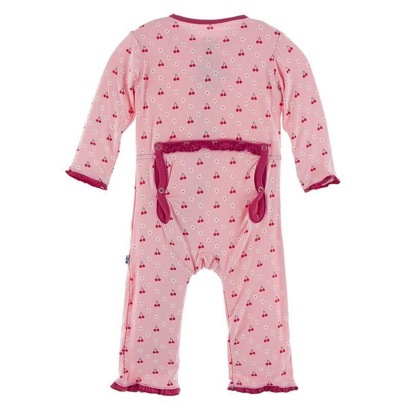 • Style and Print: Kickee Pants Muffin Ruffle Coverall with Zipper, Lotus Cherries and Blossoms