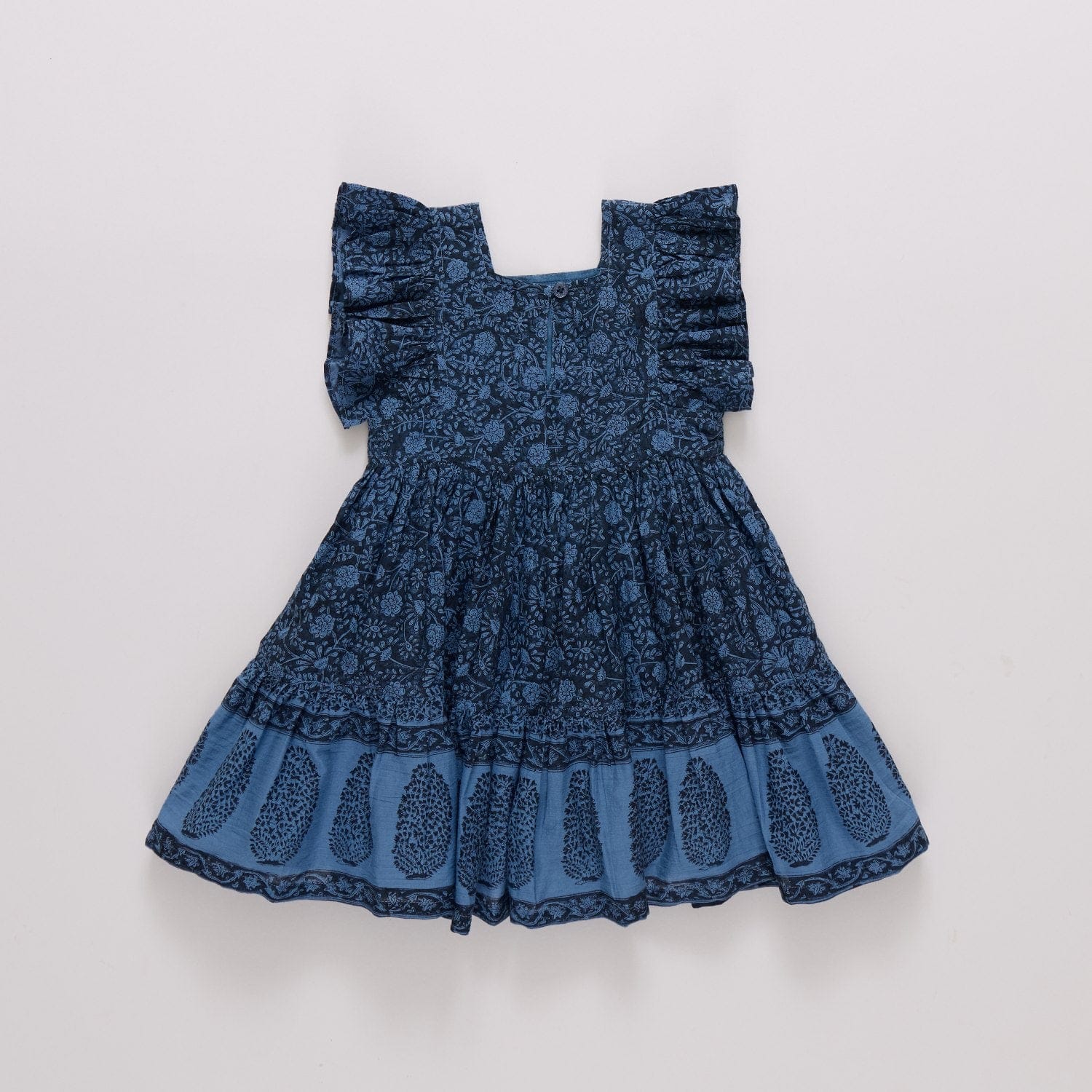Sweet and timeless, the Cotton Elsie Dress in Stellar Blue Garden Floral feels like a breath of fresh spring air. A classic garden floral print is paired with ruffled sleeves and a full, flowy skirt that moves beautifully with every step. Thoughtful details like navy glitter buttons and a tiered border print ruffle add charm to this easy, twirl worthy silhouette. Designed for special occasions and everyday moments alike.