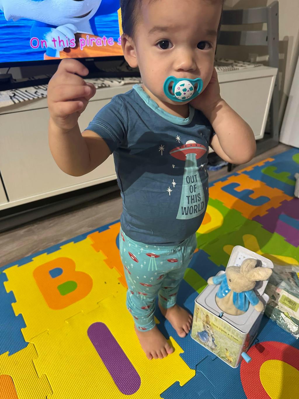 I came to Baby Riddle looking for two piece pajama sets with short sleeves and long pants and was delighted to participate in a wonderful sale. This set is made from quality bamboo and just right for a toddler’s sensitive skin. And the color and design are so appealing.