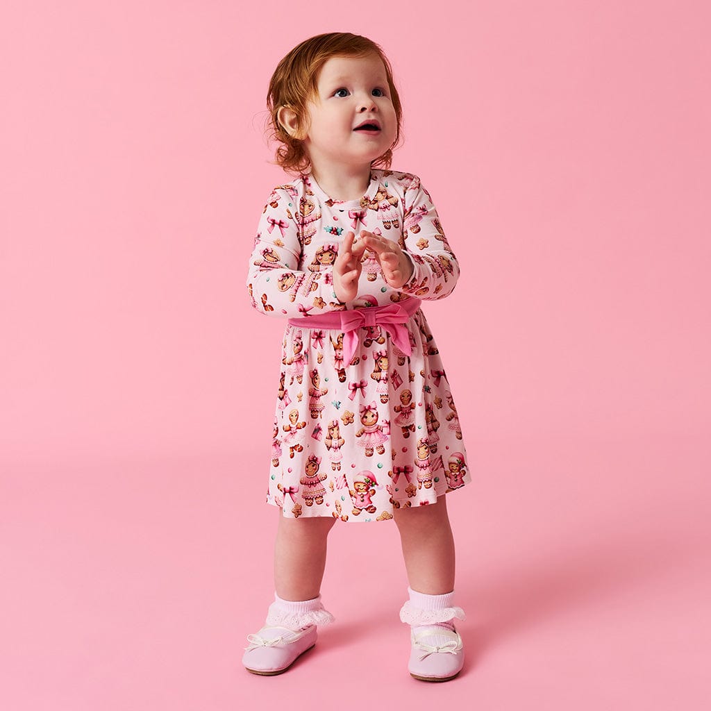 Bamboo Bow Twirl Bodysuit Dress - Ginger Posh (Gingerbread Cookies)
