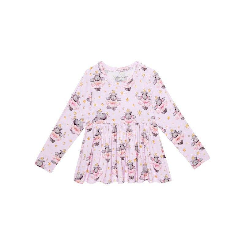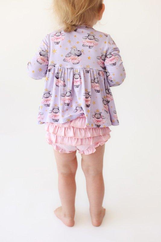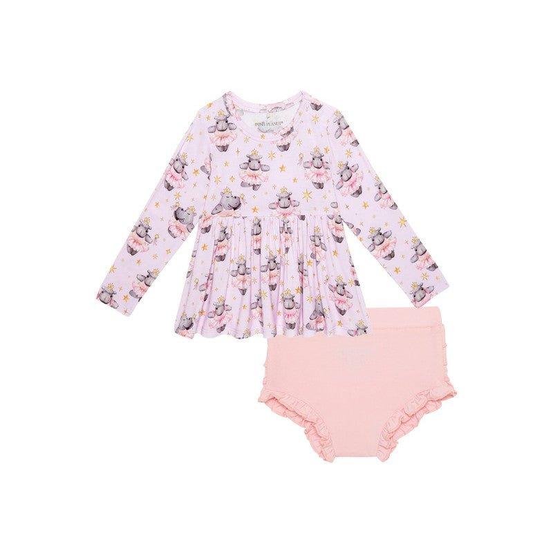 • Product: Posh Peanut Long Sleeve Basic Peplum Top & Bloomer Outfit Set - Philomena (Hippos)