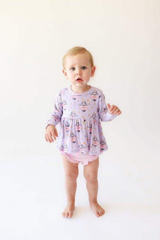 Bamboo Long Sleeve Basic Peplum Top & Bloomer Outfit Set - Philomena (Hippos)